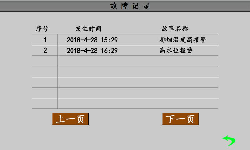 控制器開機(jī)后即不間斷地對溫度傳感器、壓力傳感器、水位傳感器以及自身電路進(jìn)行檢測,檢測到故障時(shí),立即發(fā)出聲光報(bào)警并聯(lián)鎖關(guān)閉燃燒器或加熱組和水泵等設(shè)備。并在屏幕下方的工況欄中,顯示出具體的報(bào)警信息。