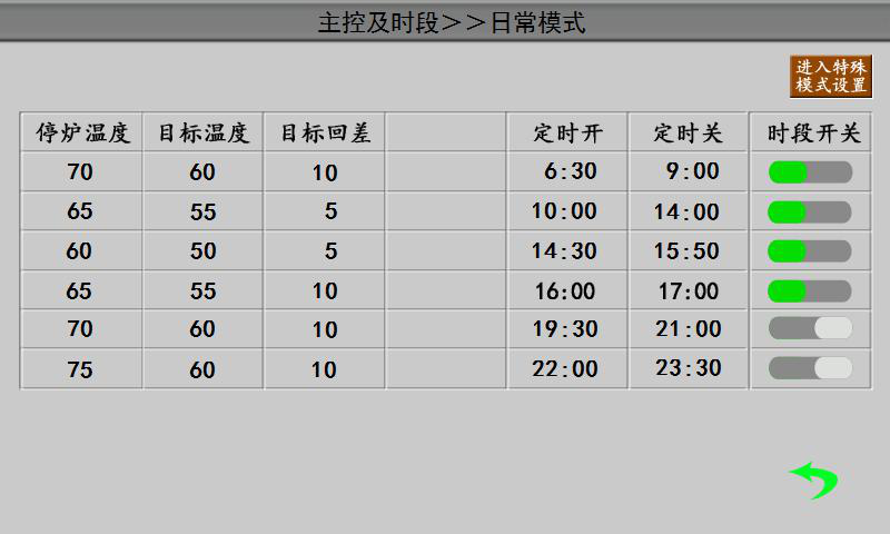 日常模式操作界面  特殊模式操作界面  公共參數(shù)設(shè)置界面
